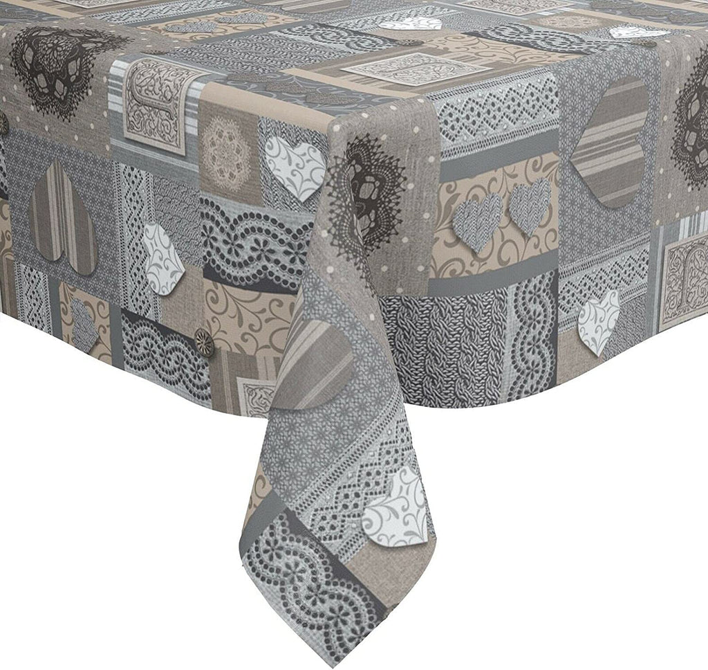 Amelia Grey and Beige PVC Vinyl Wipe Clean Tablecloth Square 130cm Warehouse Clearance