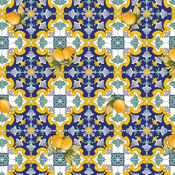 Blue and Yellow Tiles PVC Vinyl Tablecloth 20 Metres Roll