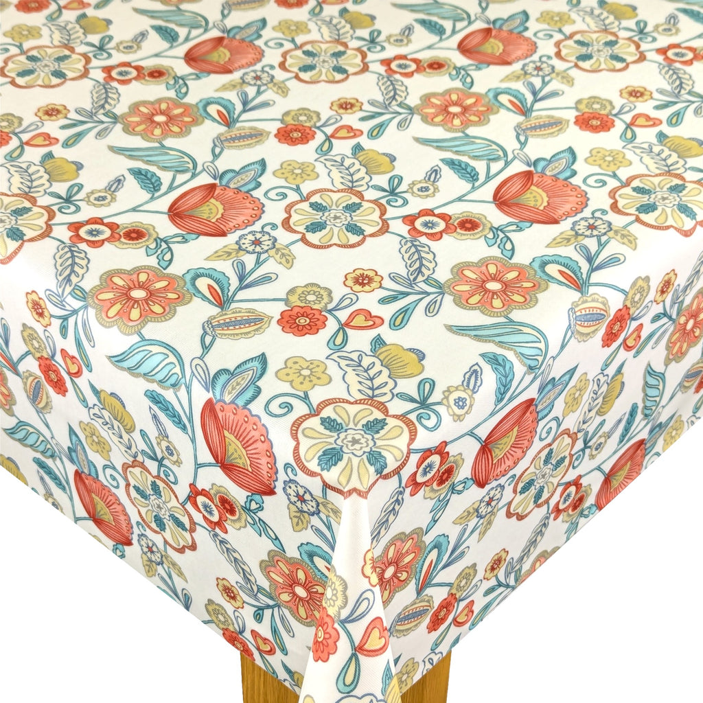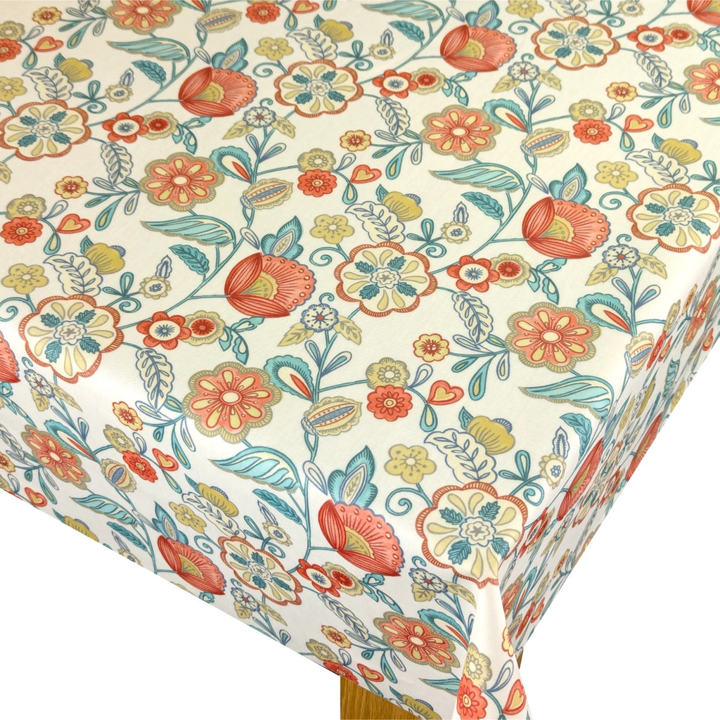This cheerful floral design has a fresh, playful contemporary feel to it, with its bold, vibrant colourways. Camellia is a printed half-panama fabric that has a clear wipeable coating and a matt finish It is designed to be multi-directional in pattern, making your table look perfect from any angle.