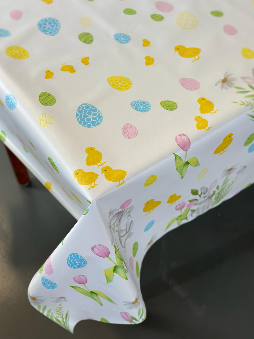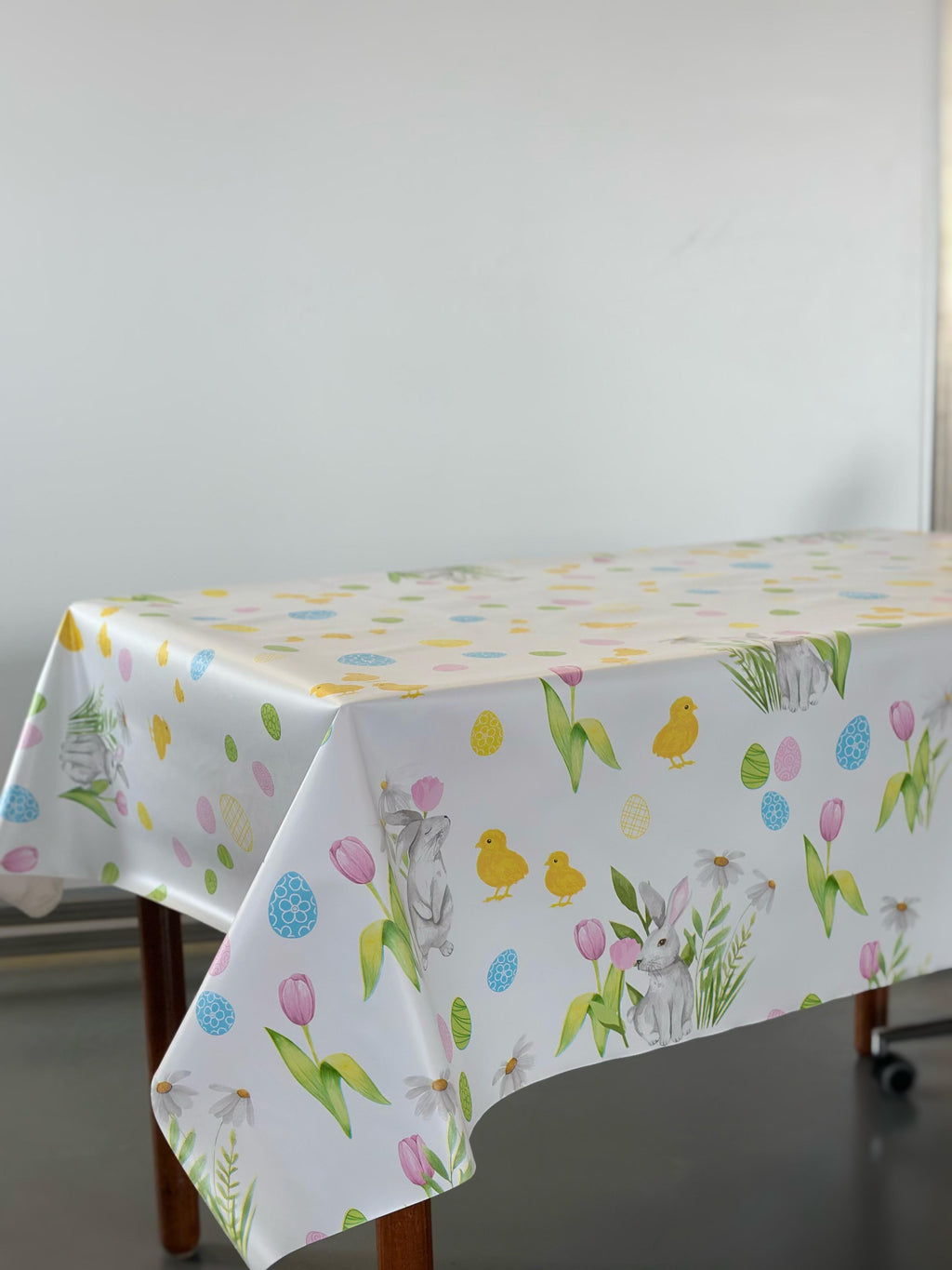 - Oilcloth made from Vinyl fabric with a non woven textile backing and coated with clear plastic that can be wiped clean.