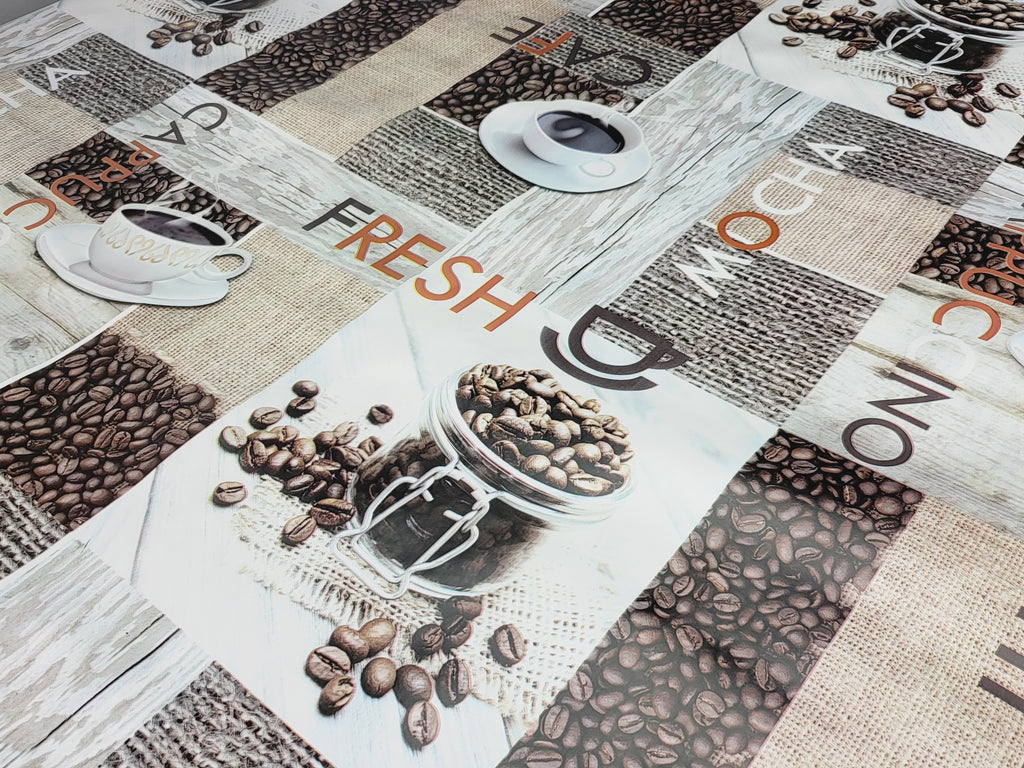 Fresh Coffee PVC Vinyl Wipe Clean Tablecloth 190cm x 140cm Warehouse Clearance