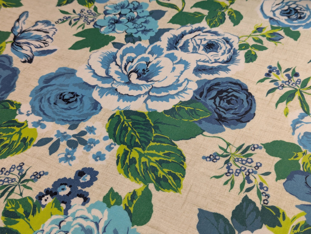Classically beautiful vintage design, Genevieve features roses, tulips, and more in a floral bouquet printed on a cotton fabric with a clear wipeable coating and a matt finish. Designed as multidirectional  pattern to work for table-tops and crafting projects. It will look perfect on your table  from any angle, Genevieve is now available in three additional new colourways due to its popular vintage inspired look.