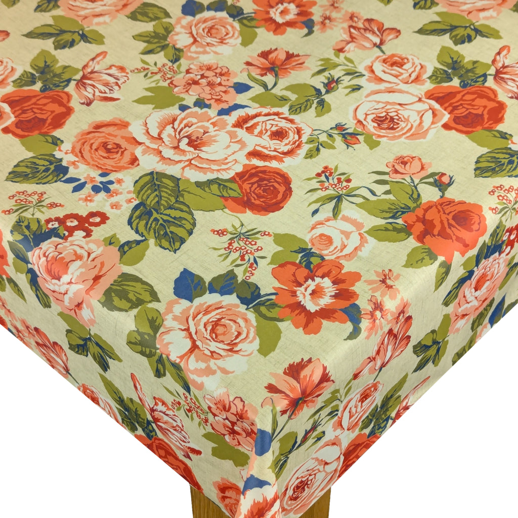 Classically beautiful vintage design, Genevieve features roses, tulips, and more in a floral bouquet printed on a cotton fabric with a clear wipeable coating and a matt finish. Designed as multidirectional  pattern to work for table-tops and crafting projects. It will look perfect on your table  from any angle, Genevieve is now available in three additional new colourways due to its popular vintage inspired look.