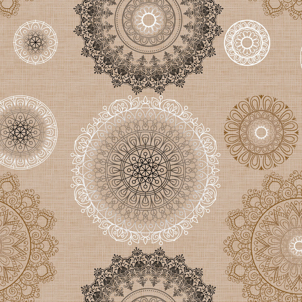Mandala Beige and Black PVC Vinyl Tablecloth 20 Metres