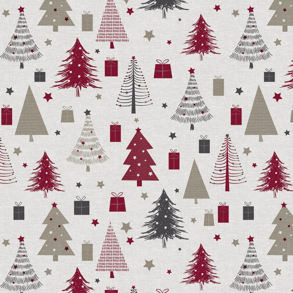 Scandi Nordic Pines is a stylish festive tablecloth design that brings a touch of modern elegance to your Christmas dining. Featuring contemporary Christmas trees in rich wine red, warm taupe and deep grey, accented with stars and little gift motifs, this design blends Scandinavian simplicity with a cosy seasonal charm. The neutral background enhances the bold tree patterns, creating a striking look that works beautifully in both traditional and modern homes. Perfect for family gatherings, festive dinners and Christmas celebrations, this tablecloth not only protects your table but also sets the scene for a warm and welcoming holiday atmosphere.