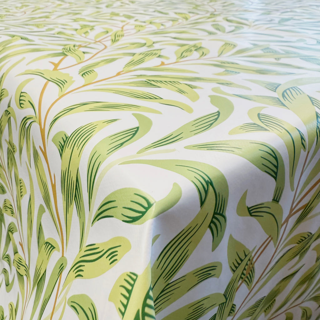 Willow Bough Leaves Sage Green Vinyl Tablecloth Roll 20 Metres x 140cm Full Roll